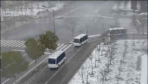 2018年1月25日,苏州地区迎来多年不遇的大雪暴雪天气,青飞智能位于苏州的测试基地积雪已达10cm。青飞智能投入4辆G200无人小巴到测试场地,测试其在大雪暴雪天气条件下的各方面性能。