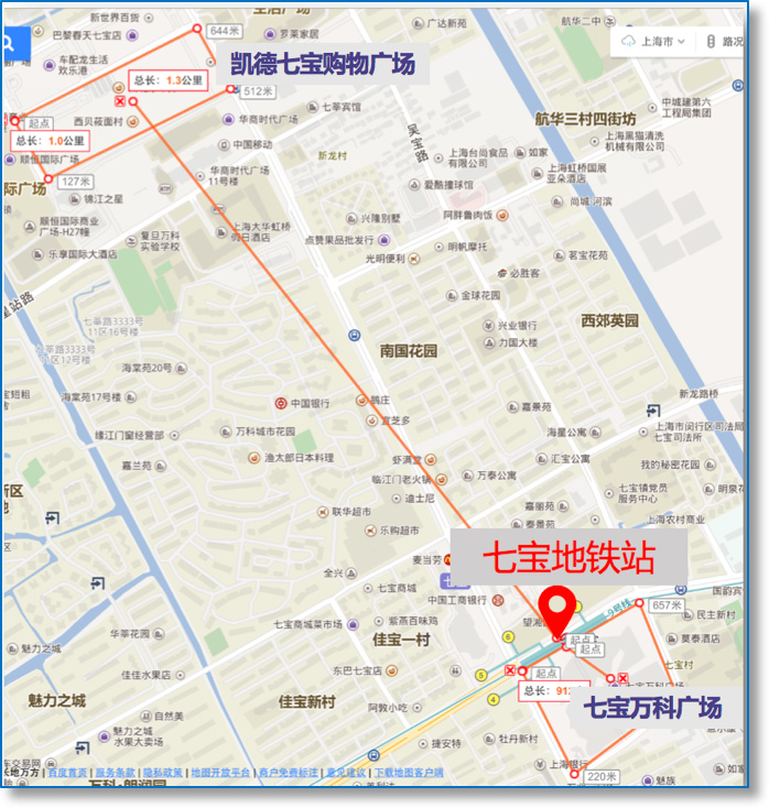 年轻就是资本,从下面的地图中我们就可以看出七宝万科距离地铁站仅仅一步之遥,而凯德七宝距离地铁站约1.3公里,七宝万科地理位置的优势比较明显。那七宝万科究竟对凯德七宝造成了多大的影响呢?下面的分析结果会给大家揭晓。