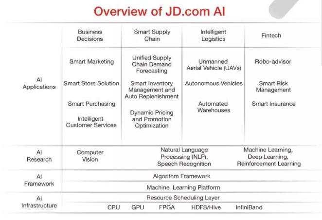 具体到京东的消费、供应链、物流和金融四大核心业务中,AI平台与研究部则成为这四大业务的技术输出中心。