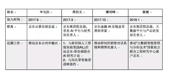 过去半年多时间,申元庆、周伯文、薄列峰、裴健等科学家加盟京东之后,利用云计算、AI技术、大数据等技术和资源优势,为京东在零售、物流等领域的跑马圈地提供动力。