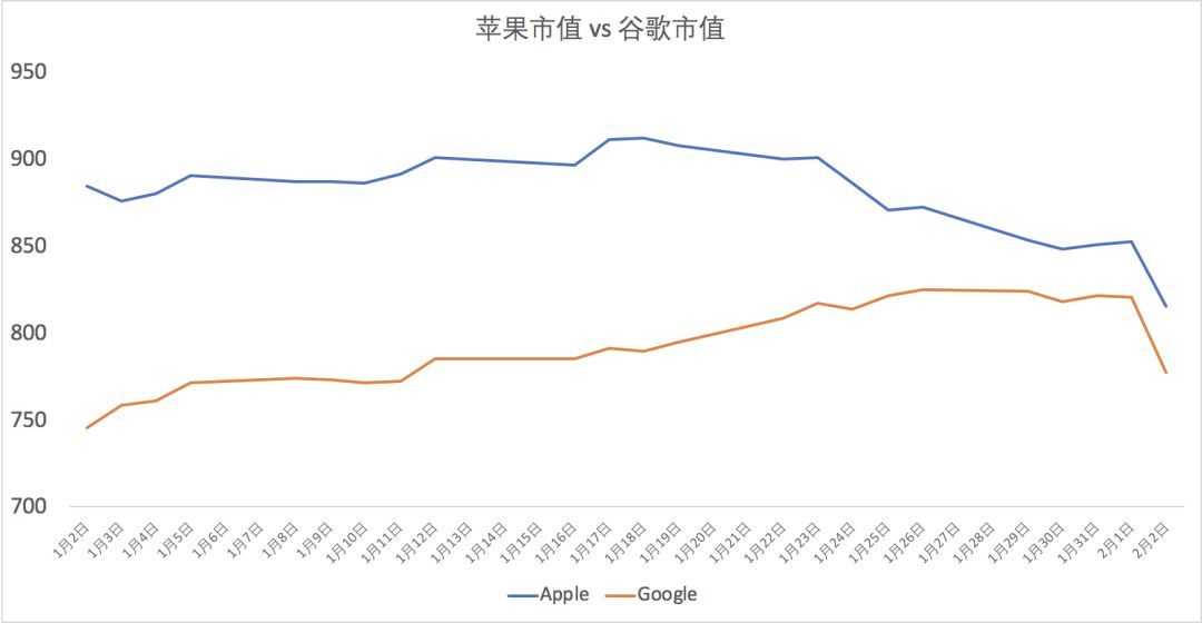 上周财报公布后,苹果与谷歌市值双双下降,因为他俩,不管是谁都没有交出一份令投资者满意的答卷。