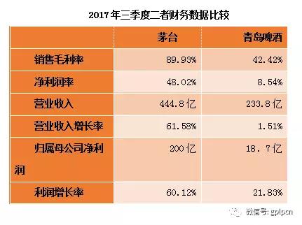 这就是茅台和青岛啤酒的2017年。