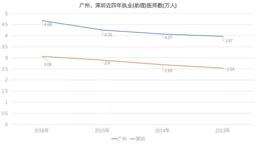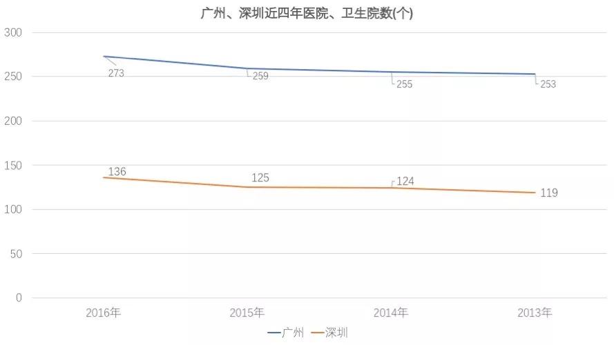 医疗方面,广州不管是执业医师数还是医疗机构数量都比深圳多很多。
