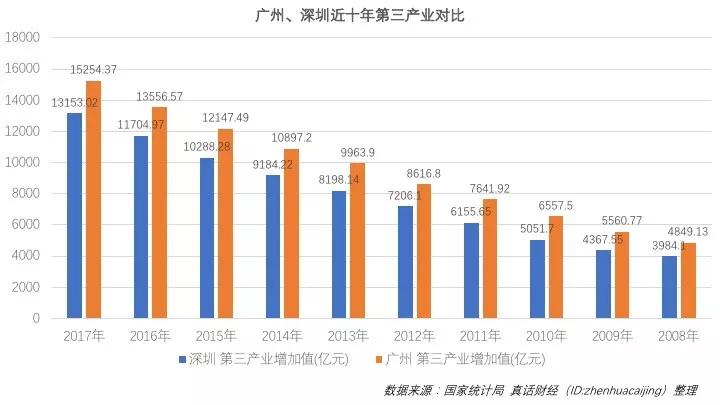 所以,如果看投资额广州比深圳多,但深圳投资的产出却比广州大,第三产业的产出和房地产相比根本不在一个量级。