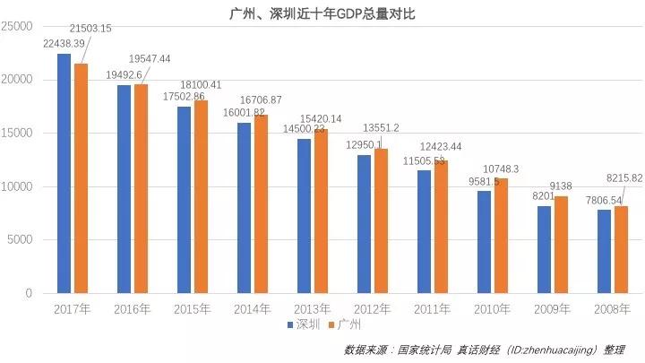 广州和深圳的竞争体现在各个方面,就连2017年经济数据的公布时间,两个城市仅仅差了不到24小时,广州31日公布,深圳选择在2月1日公布。