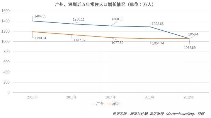 从以上两张图可以清晰的看出,广州的户籍人口一直都多于深圳,但从2011年开始,深圳户籍人口增幅明显快于广州。