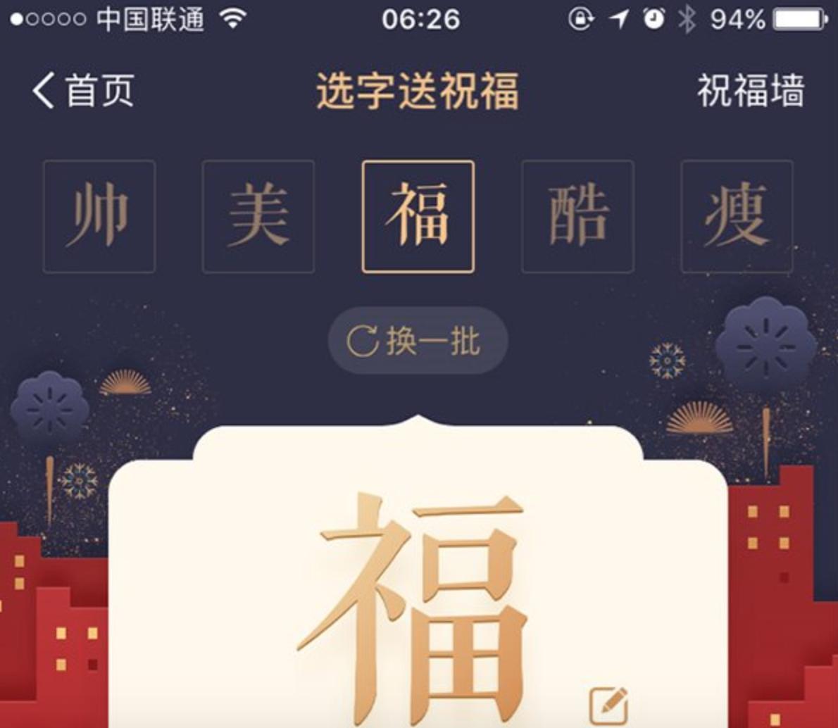 支付宝春节推一字千金红包:帅、美、福、酷、瘦
