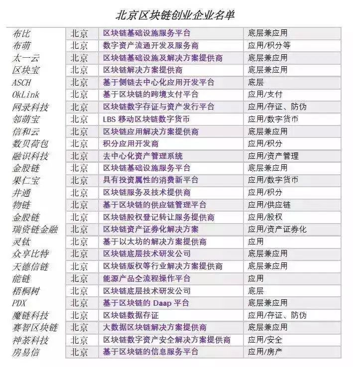 但北京在区块链的政策扶持上要低调很多。迄今北京未发布专门针对区块链的产业政策,只是在一些其他政府文件中有提及区块链。比如,2016年8月,北京市金融工作局发布《北京市金融工作局2016年度绩效任务》,文件中提到,“为推进北京市金融发展环境建设,推动设立了中关村区块链联盟。”2016年12月,北京市金融工作局与北京市发展和改革委员会联合下发《北京市“十三五”时期金融业发展规划》的通知,将区块链归为互联网金融的一项技术。文件中第五条:规范发展互联网金融,发掘产业发展新业态,里面提到,“鼓励发展区块链技术、可信时间戳认定等互联网金融安全技术,保护消费者权益,提升互联网金融的安全性。”2017年9月,由北京市金融工作局、北京市发展和改革委员会、北京市财政局、北京市环境保护局等联合下发《关于构建首都绿色金融体系的实施办法的通知》,再次提到区块链,如第十条关于发展绿色金融科技中,“发展基于区块链的绿色金融信息基础设施,提高绿色金融项目安全保障水平。”