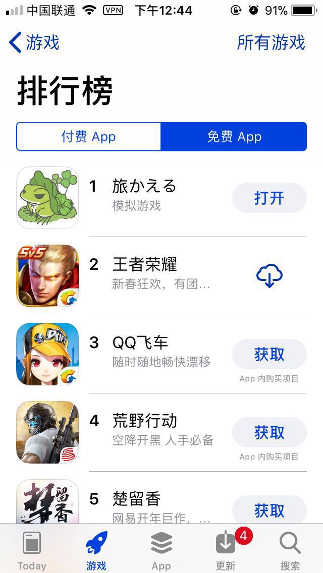 第1位,则还是近期火爆的佛系游戏《旅行青蛙》,不知道,网易发布这5款游戏后,是否能将“小青蛙”拉下马呢?