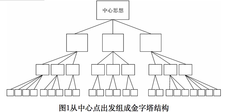 处理争议,整体处理观点,抓住中心点、中心思想,再从中心点或中心思想出发,有条理地发散思维,提出与其相关的观点,自上而下或自下而上地用垒金字塔的方法造出观点金字塔结构,全面覆盖争议的观点(如图1),使产品的设计能照顾大部分争议者,从而减少争议或直接避免争议。