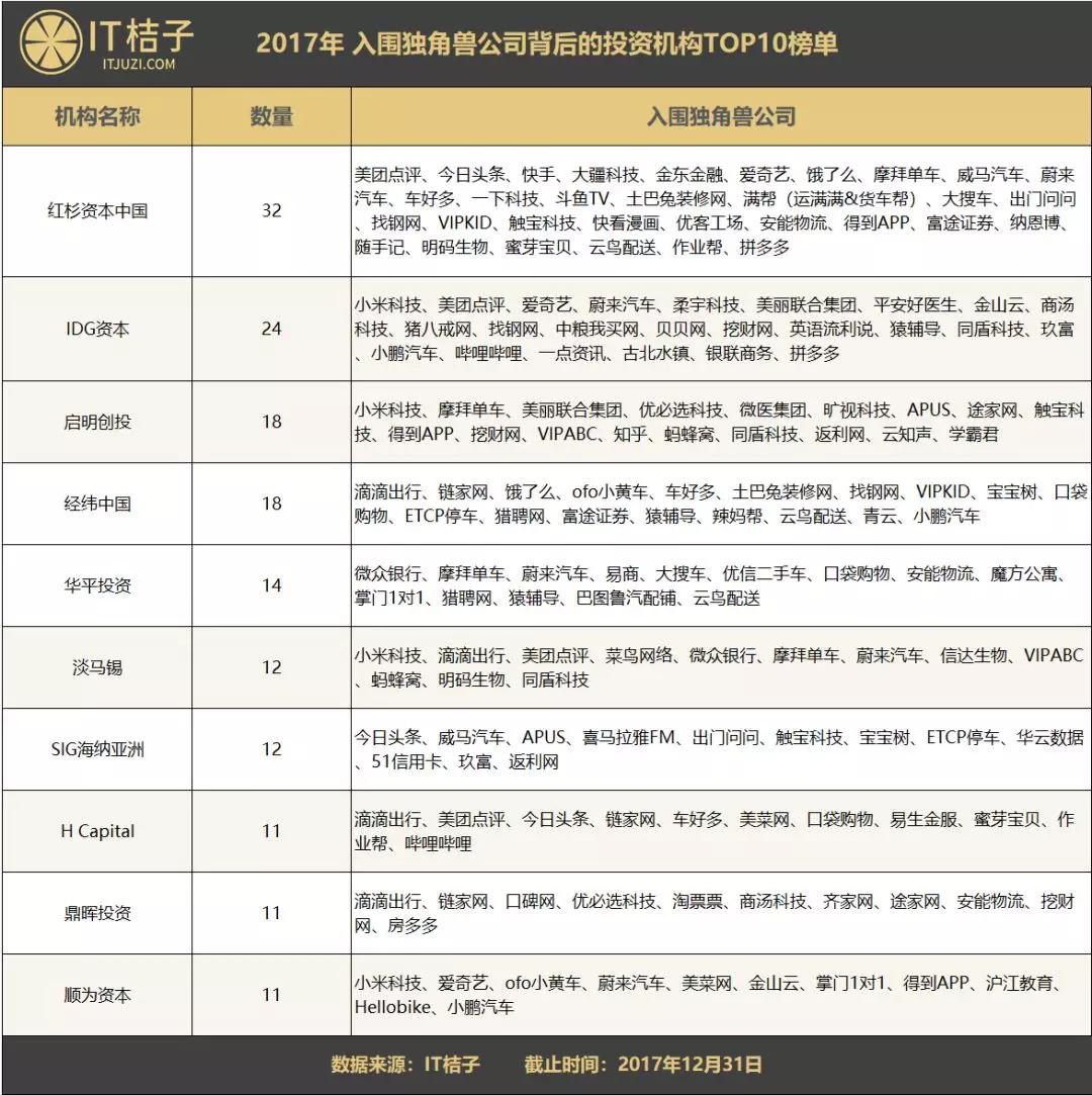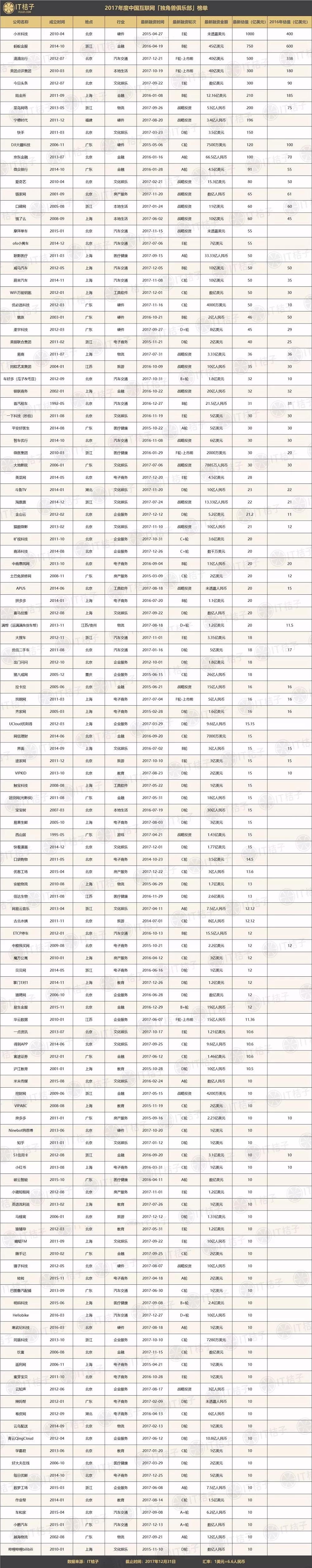 二、IT桔子2017年度中国互联网「独角兽俱乐部」榜单