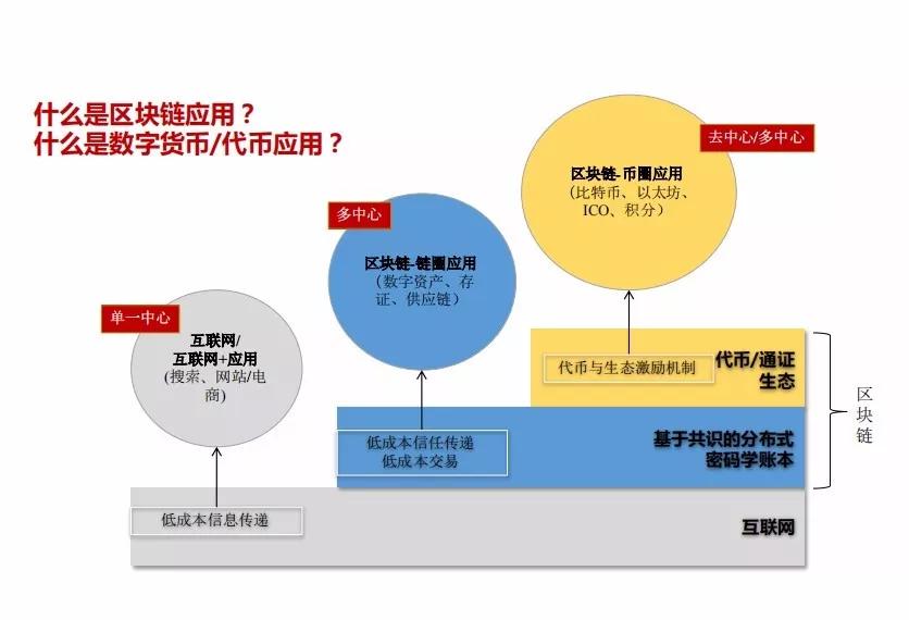 郭峰:最初的互联网也是只有技术价值,后来在其之上产生了应用,最后才产生了商业价值,这是一步一步实现的。就如计算机网络技术是分层的一样,区块链也是分层的,第一层是基于共识的分布式密码学账本,第二层是所谓的代币/通证生态系统,只有这两者结合起来,才能够称其为区块链。