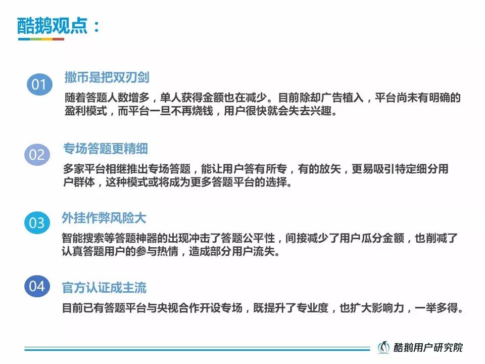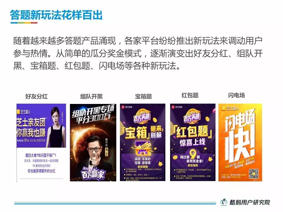 专场答题更精细:多家平台相继推出专场答题,能让用户答有所专,有的放矢,更易吸引特定细分用户群体,这种模式或将成为更多答题平台的选择。