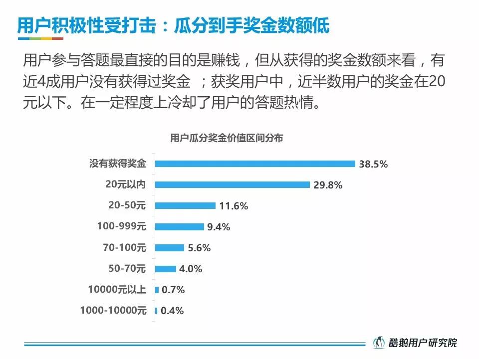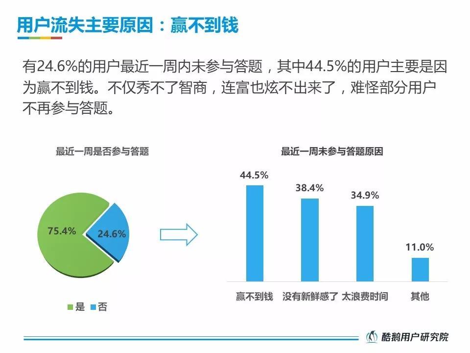 外挂作弊风险大:智能搜索等答题神器的出现冲击了答题公平性,间接减少了用户瓜分金额,也削减了认真答题用户的参与热情,造成部分用户流失。