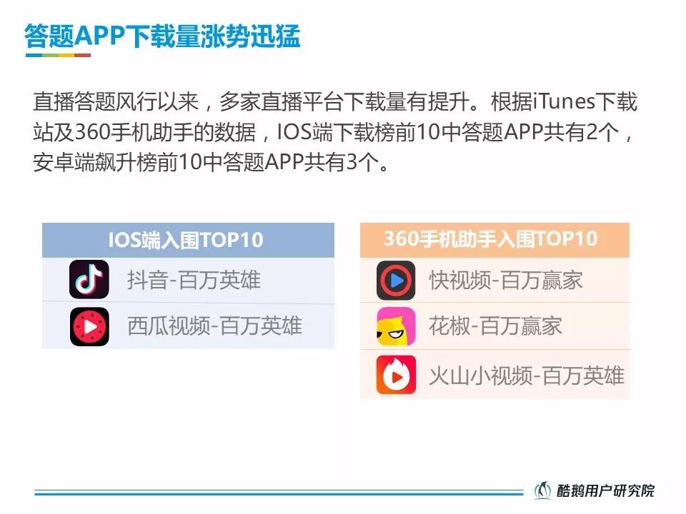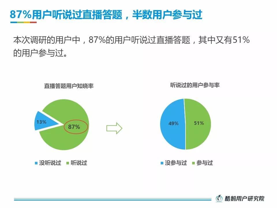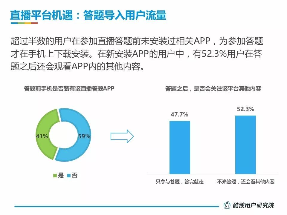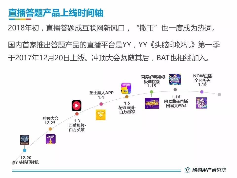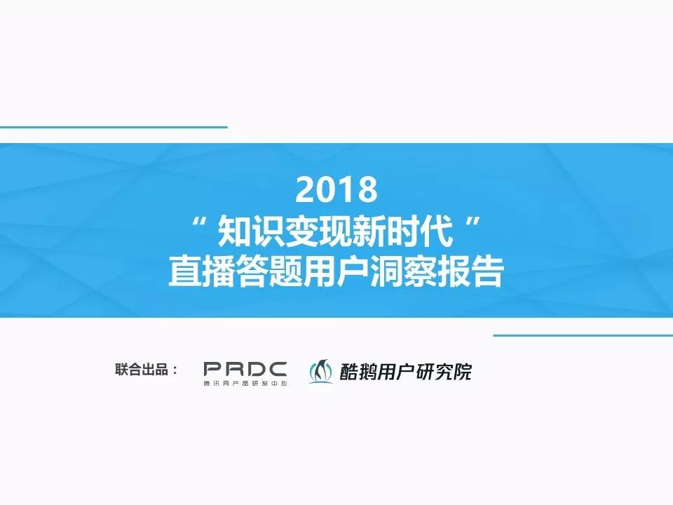 2018年伊始,各大直播平台掀起直播答题热潮,各类玩法花样翻新,“知识变现” 走红网络。是谁在参与直播答题?参与用户又有哪些迷之行为呢?腾讯网产品研发中心联合酷鹅用户研究院特发布《2018直播答题用户洞察报告》。