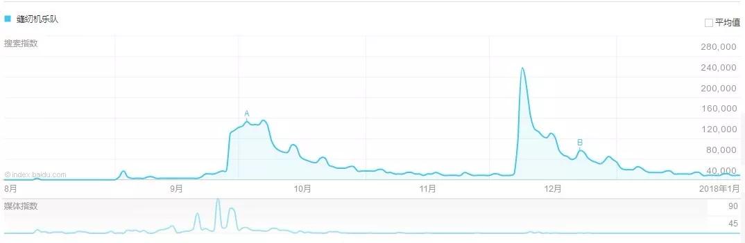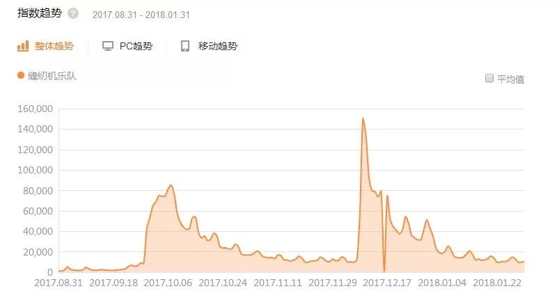 《缝纫机乐队》的百度指数冤死路径