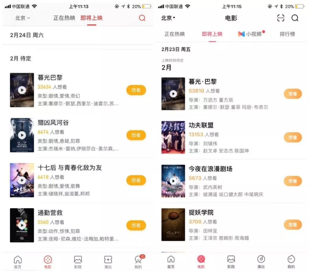 猫眼即将上映的待定区与淘票票即将上映的待定区