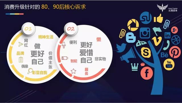 对于80后和90后,第一,我们要做更好的自己。有时候可以在前面加两个字“假装”,假装做更好的自己。我们要标榜今天的我和去年的我不一样了,我更愿意用什么样的消费来证明我是一个什么样的人。这使得人们的需求从商品的使用价值向用户价值转变,从用户价值向精神价值转变。80后90后喜欢消费和网红、偶像一样的品牌,我买这件网红的东西其实和其他东西本质上并没有什么不同,但是我可以告诉别人,我和他/她(网红、偶像)有一样的价值主张。