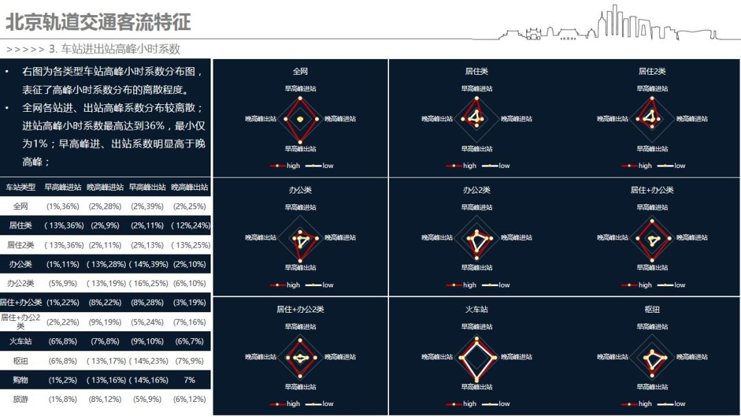 此外,我们也通过计算发现,不同地铁站点之间的不平衡状况比较突出:在进出站的高峰小时系数上,进站高峰的系数最高可以达到36%,而最低的仅仅是1%。