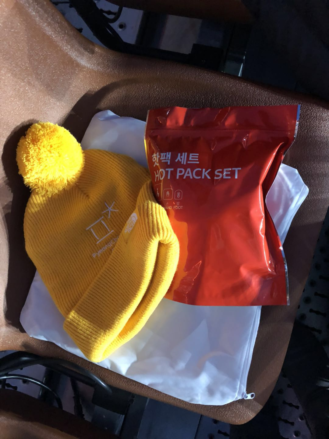 主办方贴心的准备了帽子、毯子和暖宝宝等防寒产品。不过,记者在现场写稿,仍感觉手指要被“冻掉”。