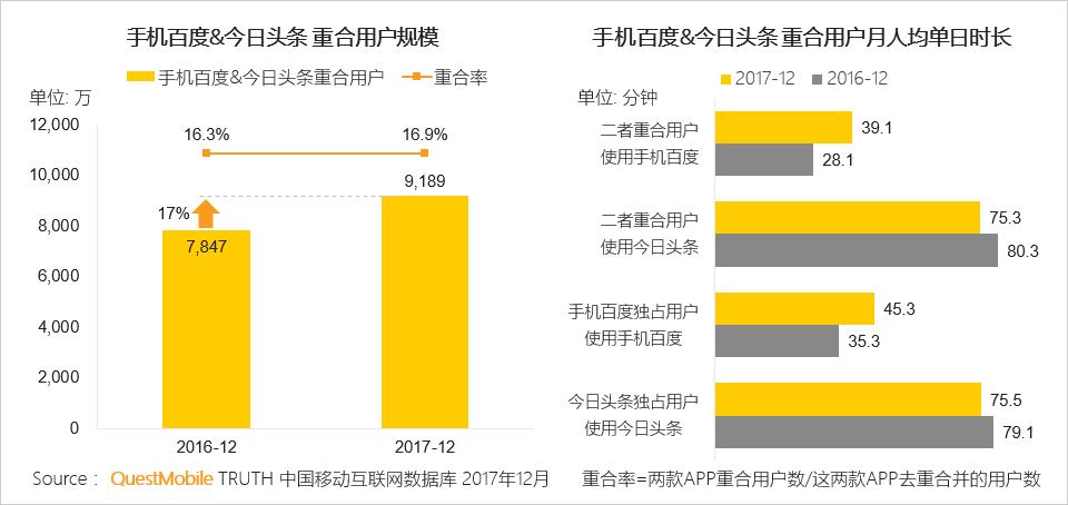 手机百度对今日头条的竞争影响在增强