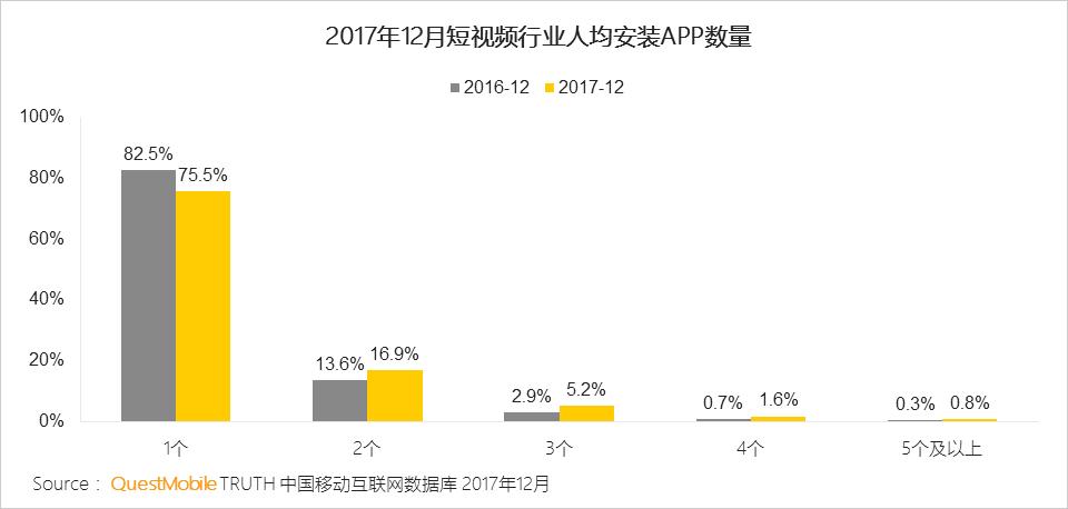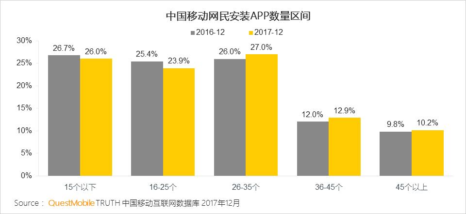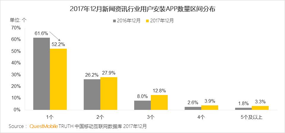 用户使用1个APP的占比下降近10%。