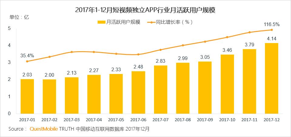 2017是短视频当之无愧的爆发元年,用户规模翻倍达到4.1亿