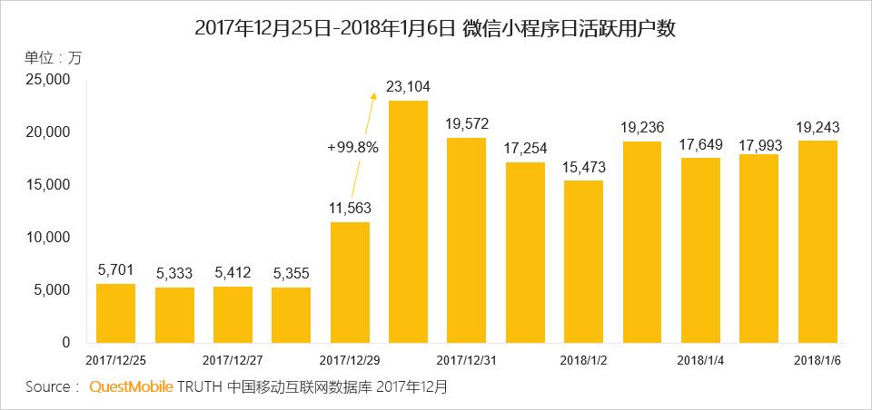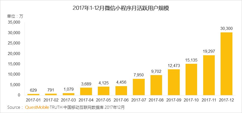 微信小程序开始显露强大的势能,2017年用户规模突破3亿