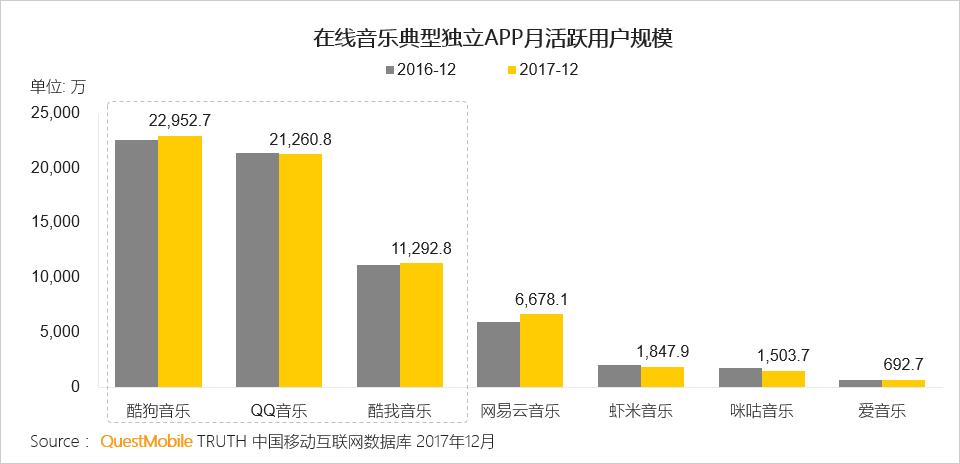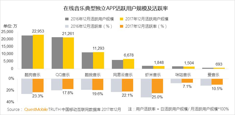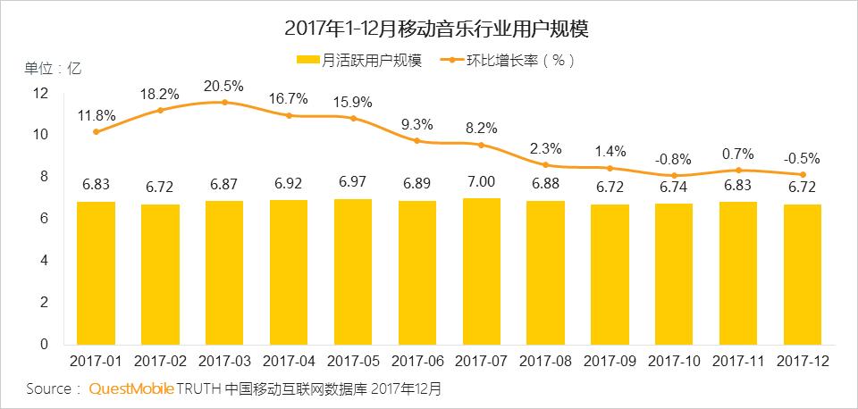 2017年移动音乐行业用户规模稳中微降