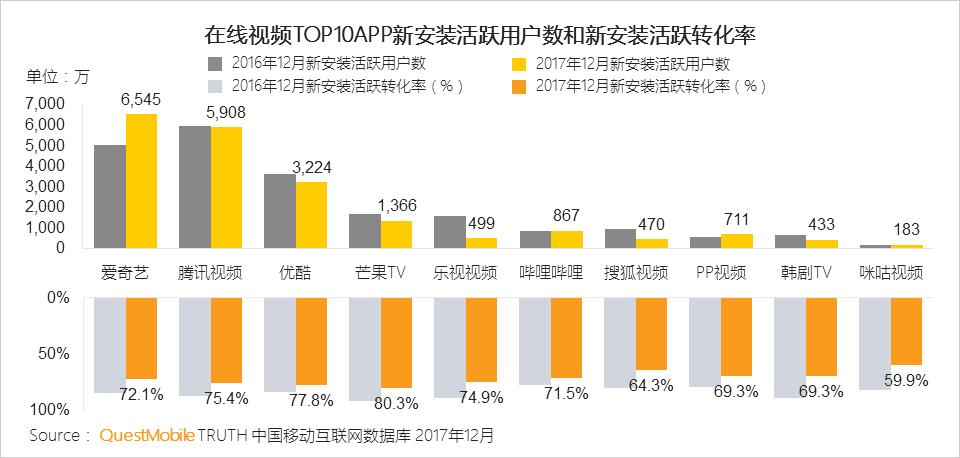 在线视频TOP10APP新安装活跃率转化普遍下降,拉新难度增大
