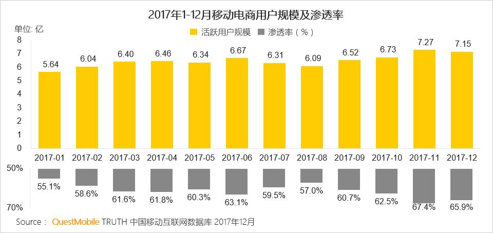 得益于移动支付的普及,2017年移动电商增长明显