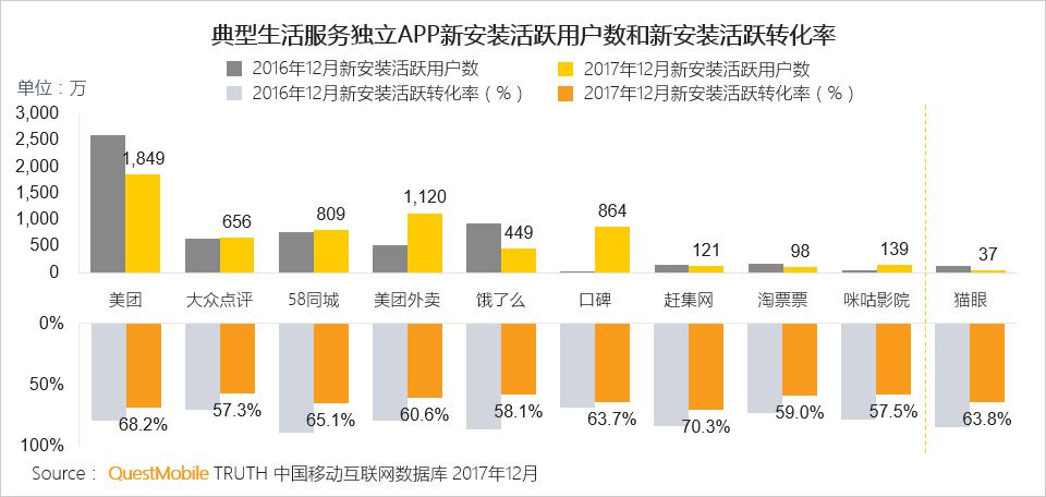 新安装整体情况(活跃数、转化率、留存率)最好的独立APP:美团外卖