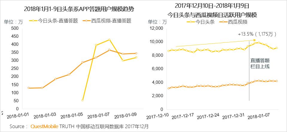受益于直播答题热情的高涨,今日头条与西瓜视频用户日活激增