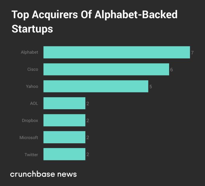 总体而言,Alphabet 共收购了7家自己投资过的企业,其中有6家收购案是由 Google 发起,一家由X Unit (Google X的前身 )发起,位居二三位的为思科与雅虎。