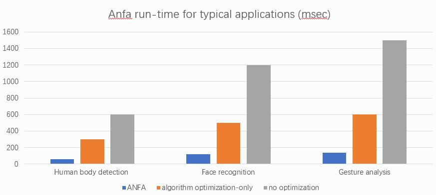 Anfa 与一般算法以及不做任何优化在对“个体监测”、“人脸识别”以及“姿态分析”的耗时对比