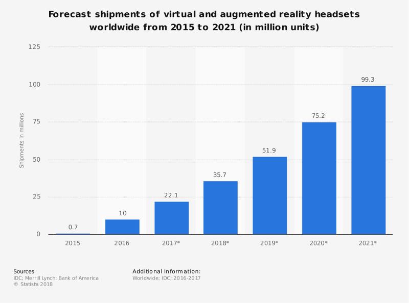 尽管头戴设备已经进入了他们的驾驶室,但是同时也会增加他们对硬件的依赖性,这个行当天生就是有风险的。不过到2021年预计全球的AR/VR头戴设备的销量将达到9900万,所以发展机会还是很有吸引力的。