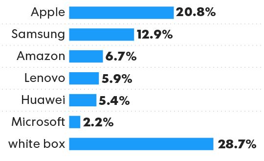 由于不具竞争力的高定价以及缺少差异化的产品,今天苹果的市场份额还在继续下降。预计这种趋势还会继续。