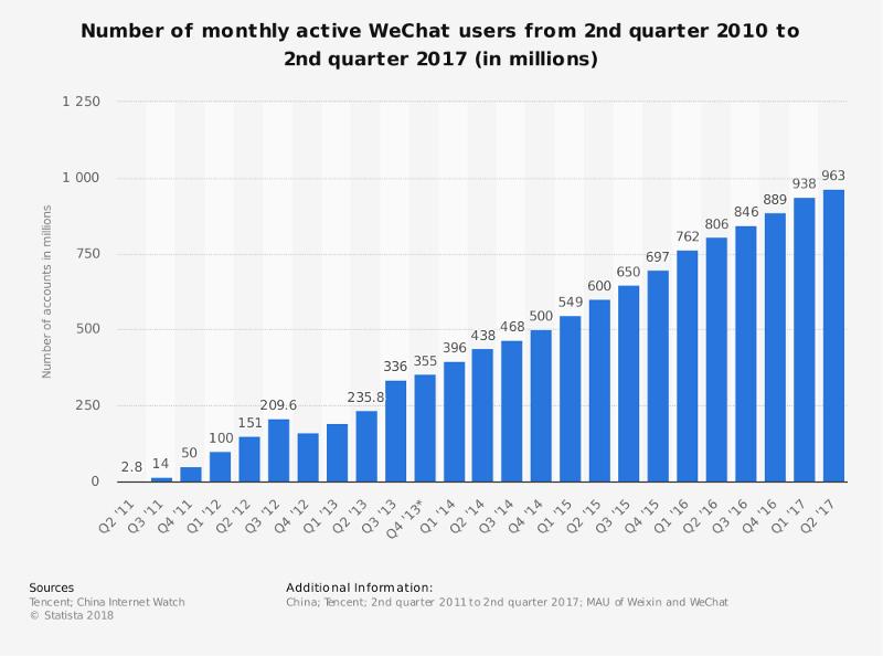 微信属于中国的互联网巨头腾讯,这个大型财团的市值达到了5430亿美元(超过Facebook)。尽管微信的收入和利润数字并不对外公布,不过2015年的时候对它的估值是约830亿美元,相当于当时腾讯总市值的1/2。这意味着微信这个聊天应用在今天的价值已经超过了2710亿美元。