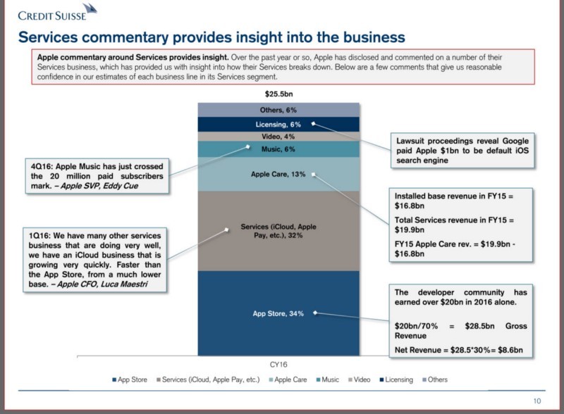 这是苹果的主要增长点,也是未来会更加侧重的领域。他们很了解硬件的挑战,也很清楚服务的利润,鉴于服务部门的成功(2017年Q4苹果的服务收入为85亿美元,复合年增长率为34%)以及害怕iPhone销售的下降,看起来我们的水果朋友准备要在这个领域加倍下注了。