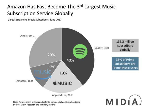 借助庞大的用户群和iTunes,苹果非常专注地建立起他们的订户群。不管有没有超越Spotify,但Amazon已经在赶上来,而且苹果也需要订阅服务收入来弥补硬件的风险。