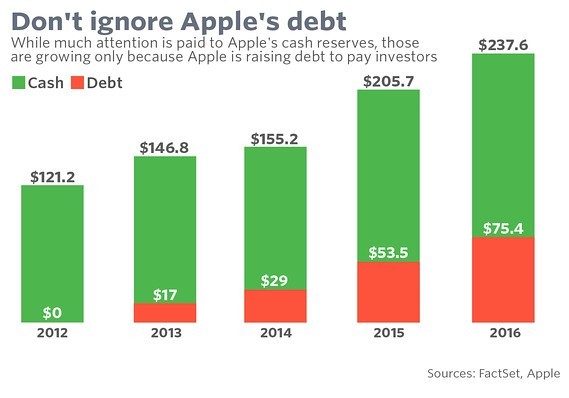 尽管苹果手上的现金多到用不完,我想“转移”资金的税收影响在财务上还是会让负债显得更有吸引力。