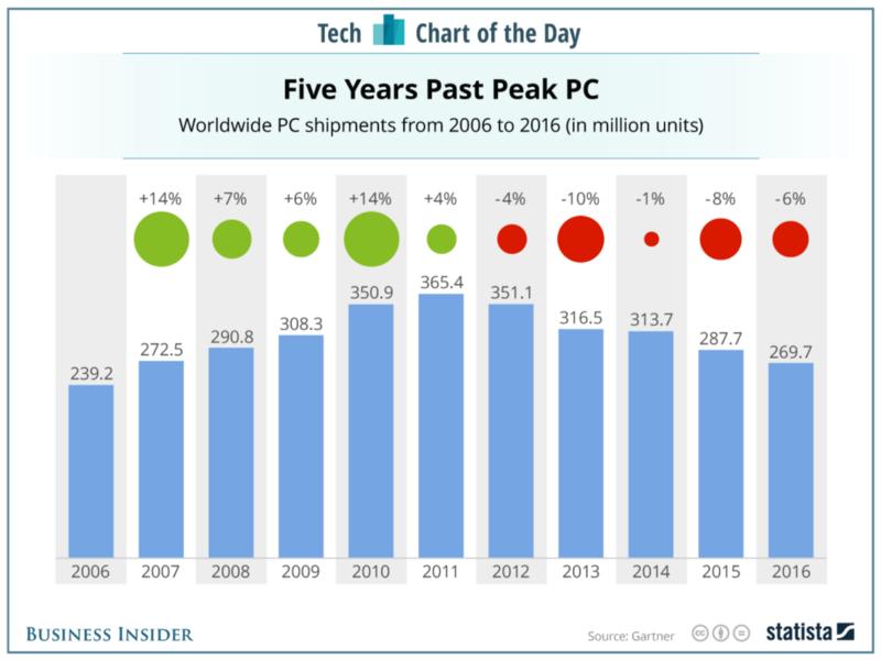 问题是世界正在移动化。PC巅峰已过,一切已经平静下来。