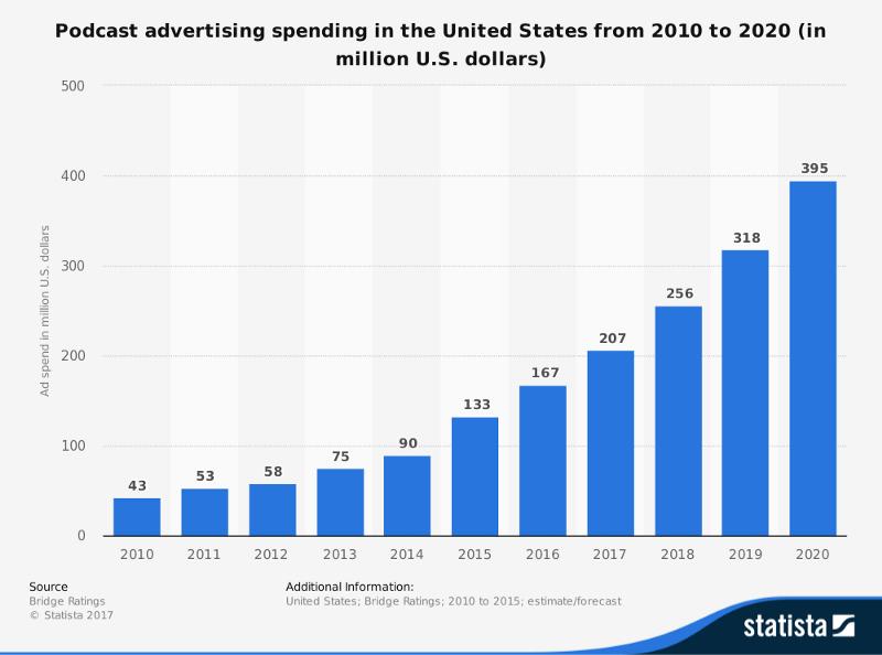 买卖播客广告缺少简单易用的系统。但尽管存在这些限制,预计到2020年播客广告仍然达到3.95亿美元的规模。
