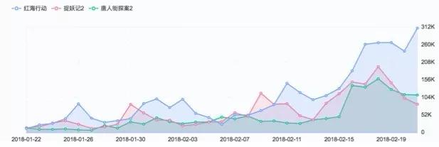 春节档7天假期结束后,《红海行动》收获11.9亿票房,落后于《唐人街探案2》的18.9亿和《捉妖记2》的17亿,但从票房变化的曲线和相关网络热度来看,《红海行动》仍有很大的后劲,《捉妖记2》的单日票房却已经回落到1亿元左右,总票房被《红海行动》超过似乎只是时间问题。而当下最大的悬念则是,《红海行动》能否超越《唐人街探案2》成为春节档最大的赢家。