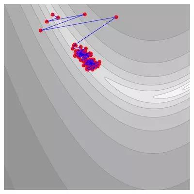 神经网络使用的优化算法是梯度下降法,随机梯度下降法由于条件数的原因得不到准确的下降方向,而后又被噪音不断稀释造成了很大的影响!下图数噪音对于Rosenbrock方程最小值的优化过程影响: