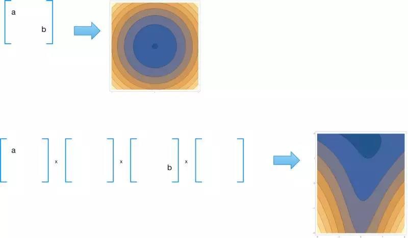 让我们来看一个例子,将一系列的随机举证相乘并用任意的输入ab来归一化结果: