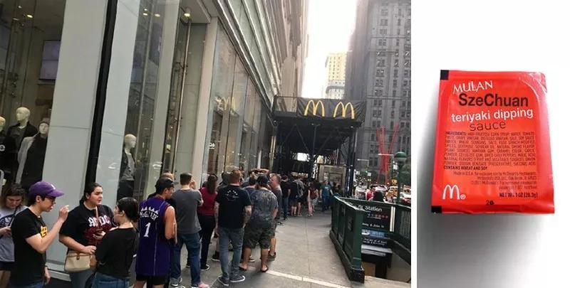 后来的故事相信有同学已经知道了,美国麦当劳顺势在 2017 年 10 月 7 日限量回归了这款“四川辣酱”,在各地引来上千名顾客排队购买,却因为发售量太少使得大多数顾客未能如愿品尝到这款传说中的中国式蘸酱,最终引发顾客骚动抗议,引来警察维持秩序。