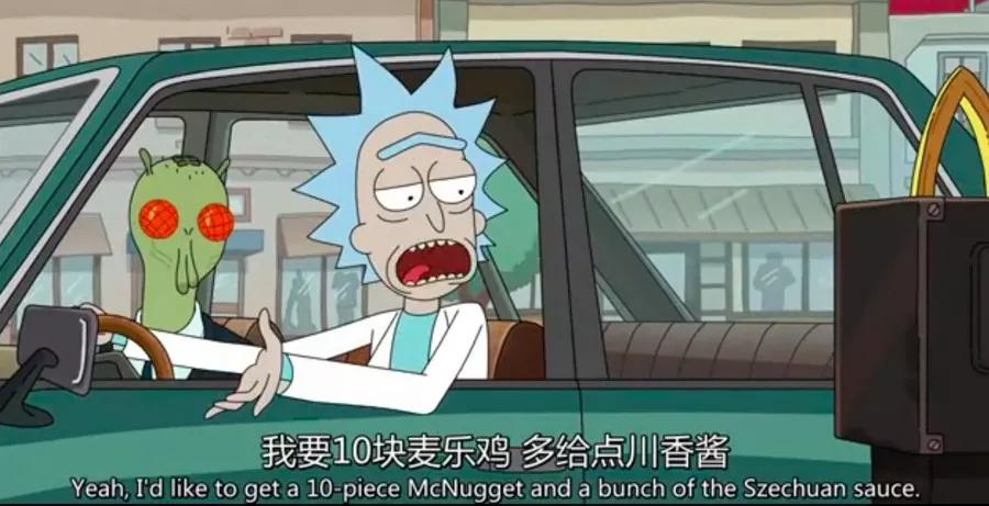 2017 年 4 月,美国科幻动画《瑞克和莫蒂》第三季第一集开播。这部超人气动画在 2015 年 10 月结束第二季后,就一直被粉丝们挂念于心。而在新一季第一集中,男主角天才疯狂科学家“瑞克”就展示了他对“四川辣酱”的狂热,称这款中国式蘸酱是可以支撑他到最后的动力,并跑去麦当劳买了 10 块麦乐鸡块,点名要越多越好的“四川辣酱”。