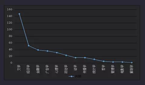 金融学、经济学排名第一、二位,表明媒体对金融学与经济学人才具有比较大的需求。财经金融类新闻所具有的专业性媒体工作者在具备基本新闻专业知识与能力的基础上,必须具备一定的经济学或金融学专业背景。