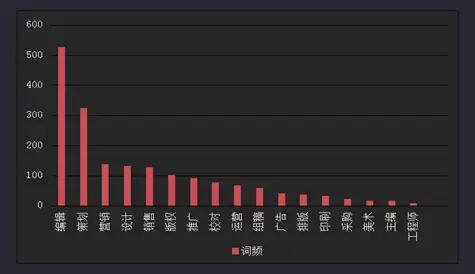 编辑、策划词频统计分列第一、二名,表现出出版行业对传媒人才的需求依然聚集传统编辑、策划岗位。不论互联网等技术如何发展,编辑和策划岗位永不过时。